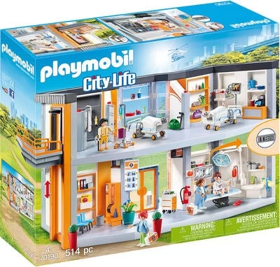Se lige dette store hospital fra Playmobil. Gør dig klar til at modtage patienter med alle slags problemer – for eksempel benbrud, influenza eller udslæt! Hvad end patienterne fejler, skal du og dine læger stå klar til at hjælpe dem.