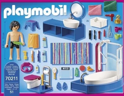 I dette sæt fra Playmobil får du sjove møbler og tilbehør til badeværelset. Bad i det store badekar og børst tænderne ved håndvasken. Sættet indeholder en Playmobil-figur, et badekar, der kan fyldes med vand, en håndvask, et toilet og meget andet. Et sjovt sæt, der vil passe perfekt ind i dit Playmobil-hus!