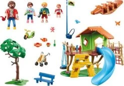 Oplev en eventyrlig legeplads med dette sjove legesæt fra Playmobil! I legesættet får du en legeplads, fire figurer og forskelligt legetøj samt tilbehør. Du kan klatre op til legehuset ved hjælpe af klatrenettet eller klatrevæggen og bagefter suse ned igen på rutsjebanen. Gyng på dækgyngen eller tag en ven med på krokodillevippen. Find på dine helt egne eventyr og historier – kun fantasien sætter grænser!