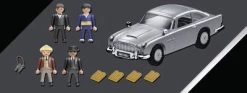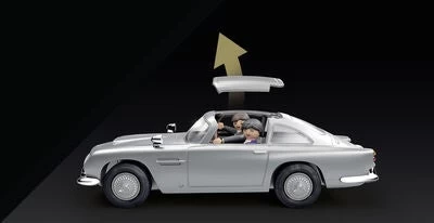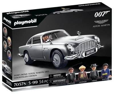 Legesæt fra Playmobil med den kendte britiske agent, James Bond, og hans hurtige bil Aston Martin DB5. Sættet indeholder en James Bond-figur, hans sportsbil og tre onde skurke fra filmen Goldfinger. Sæt Bond bag rattet og far afsted i en spændende biljagt med hvinende hjul og pistolkugler om ørene.