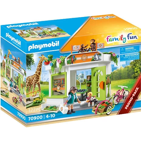 Sættet indeholder en dyrlæge og en pige, en giraf, en abe og en babyabe, en babypanda, to skildpadder, en øvelsesbygning med undersøgelsesbord, planke, lægeboks og meget andet ekstraudstyr til at pleje dyrene.