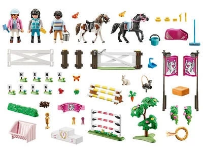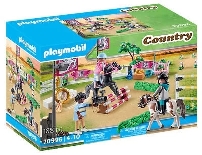 Stort legesæt fra Playmobil med rideturnering. I dette sæt får du heste, forhindringer, ryttere, sejrsskammel og meget mere. Skab din egen hoppeturnering med dette fantasifulde sæt. Du kan kombinere dette sæt med andre sæt fra Playmobils Country-serie.