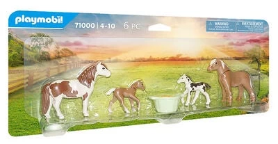 Legesæt fra Playmobil med islandske ponyer med føl. I dette sæt får du to søde islandsheste med et føl samt en kurv med mad. Du kan kombinere dette sæt med andre sæt fra Playmobils Country-serie.