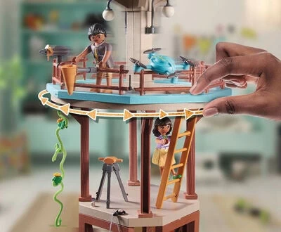 71008 Wiltopia forskningstårn fra Playmobil med et sjovt design med seje detaljer. Det har et aftageligt kompas og to figurer. Forskningstårnet har en drone, forskellige, søde vilde dyr og masser af, spændende tilbehør. Perfekt til timevis af fantasifuld leg.