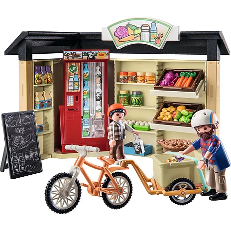 I den døgnåbne gårdbutik med selvbetjening er der masser af plads til alle friske produkter. Ved flaskeautomaten kan der købes flasker. I cyklens anhænger er der plads til de produkter, der er købt i gårdbutikken.