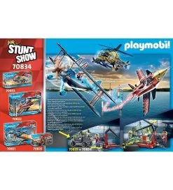 Playmobil Air Stuntshow sættet udvikler barnets fantasi, som er det eneste, der sætter grænserne for mulige scenarier, barnet kan udleve i leg. Det er hurtigt og nemt at pakke frem og væk igen, og sættet samles let ved hjælp af den medfølgende vejledning.