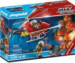City Action brandhelikopter fra Playmobil med to brandmænd. Den har en grill og et træ, der kan kan gå ild i med plastikflammer. Heldigvis har redningshelikopteren en vandkanon, der kan slukke ilden. Perfekt til mange timers sjov.
