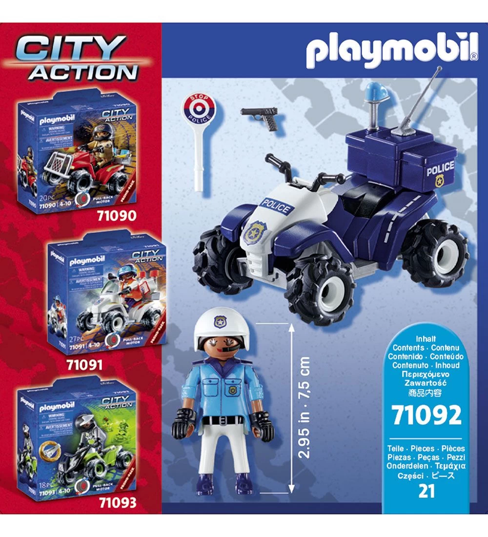 Speed Quad-politi-ATV’en er med en betjent-figur og tilbehør og har pull back-funktion, så den kan køre rigtigt. Sættet er en Promo-Pack, hvilket er det samme som limited edition.