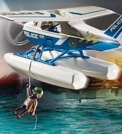 Sejt Playmobil City Action sæt med i alt 33 dele, der samles til en en politi-vandflyver på smuglerjagt.