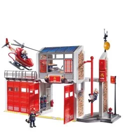 Enheden af brandfolk sidder klar til at rykke ud og venter på deres store brandstation med en brandmandsstang, en brandalarm (2 x AAA-batterier påkrævet, ikke inkluderet), en brandhelikopter og en helikopterlandingsplads samt to garager til udrykningskøretøjer.