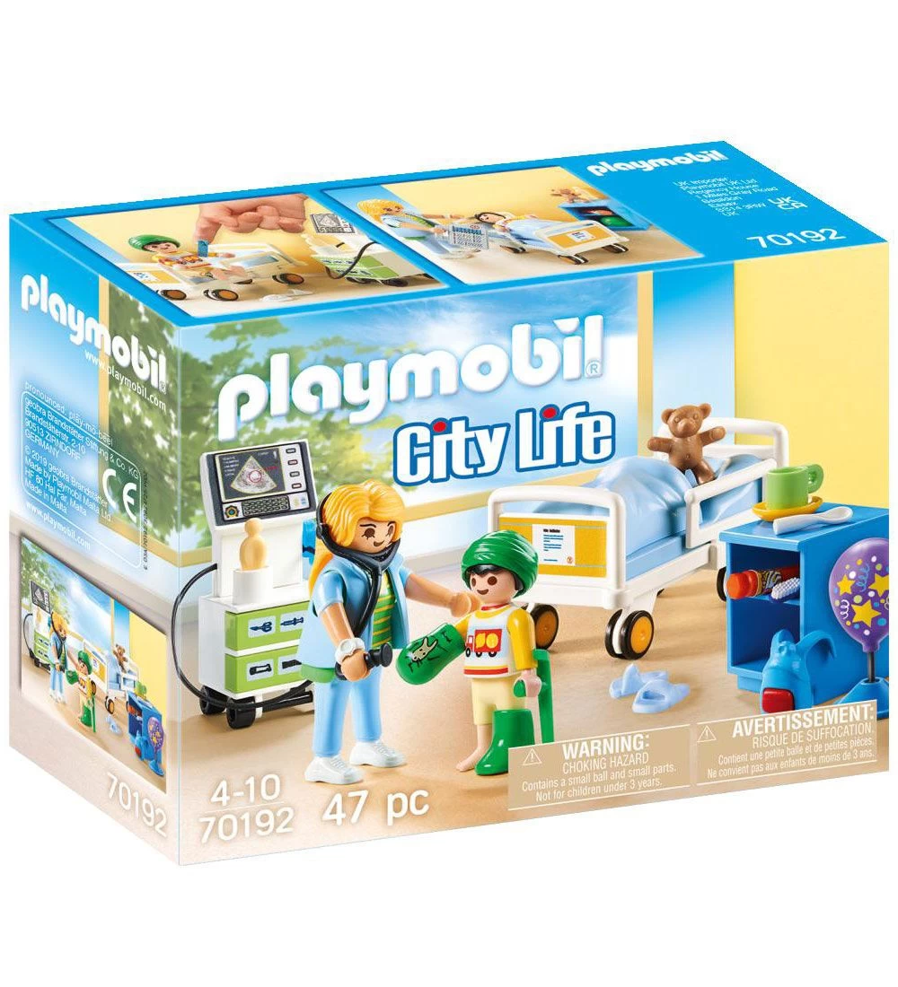 Fint Playmobil City Life sæt med i alt 47 dele, der samles til en hospitalsstue til børn.