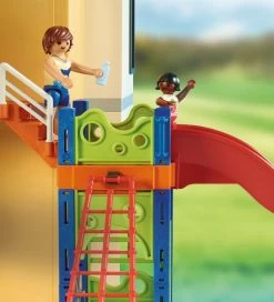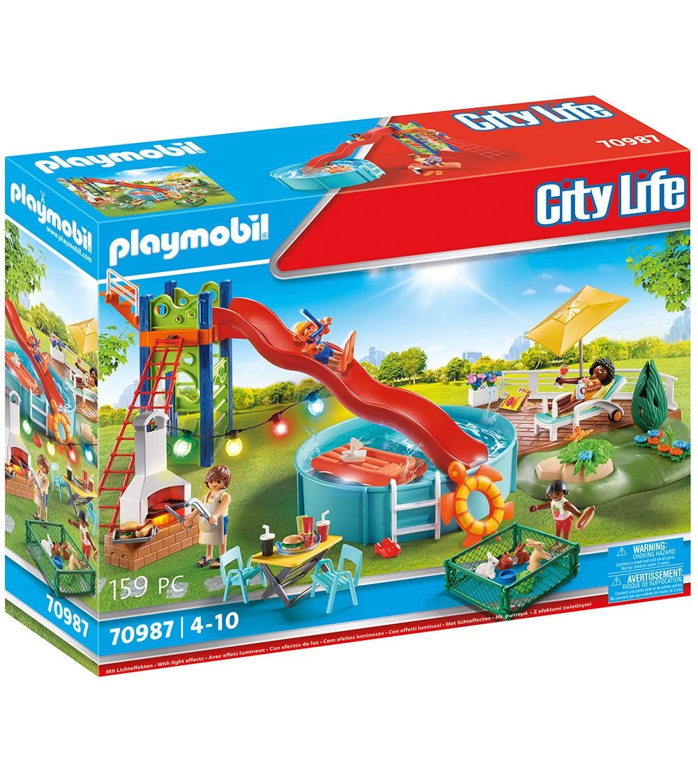 Fint Playmobil City Life sæt med i alt 159 dele, der samles til en poolparty med rutsjebane.
