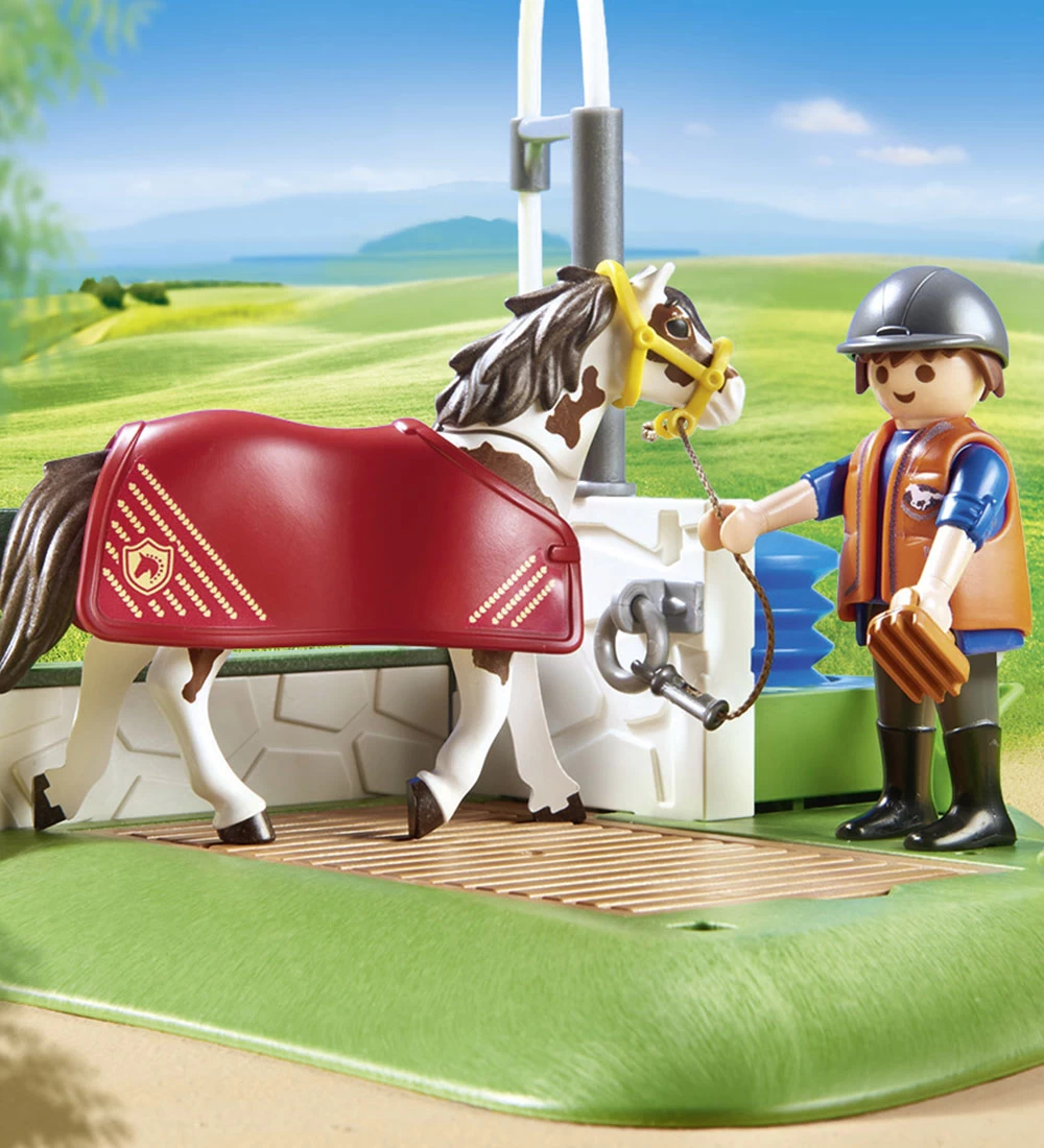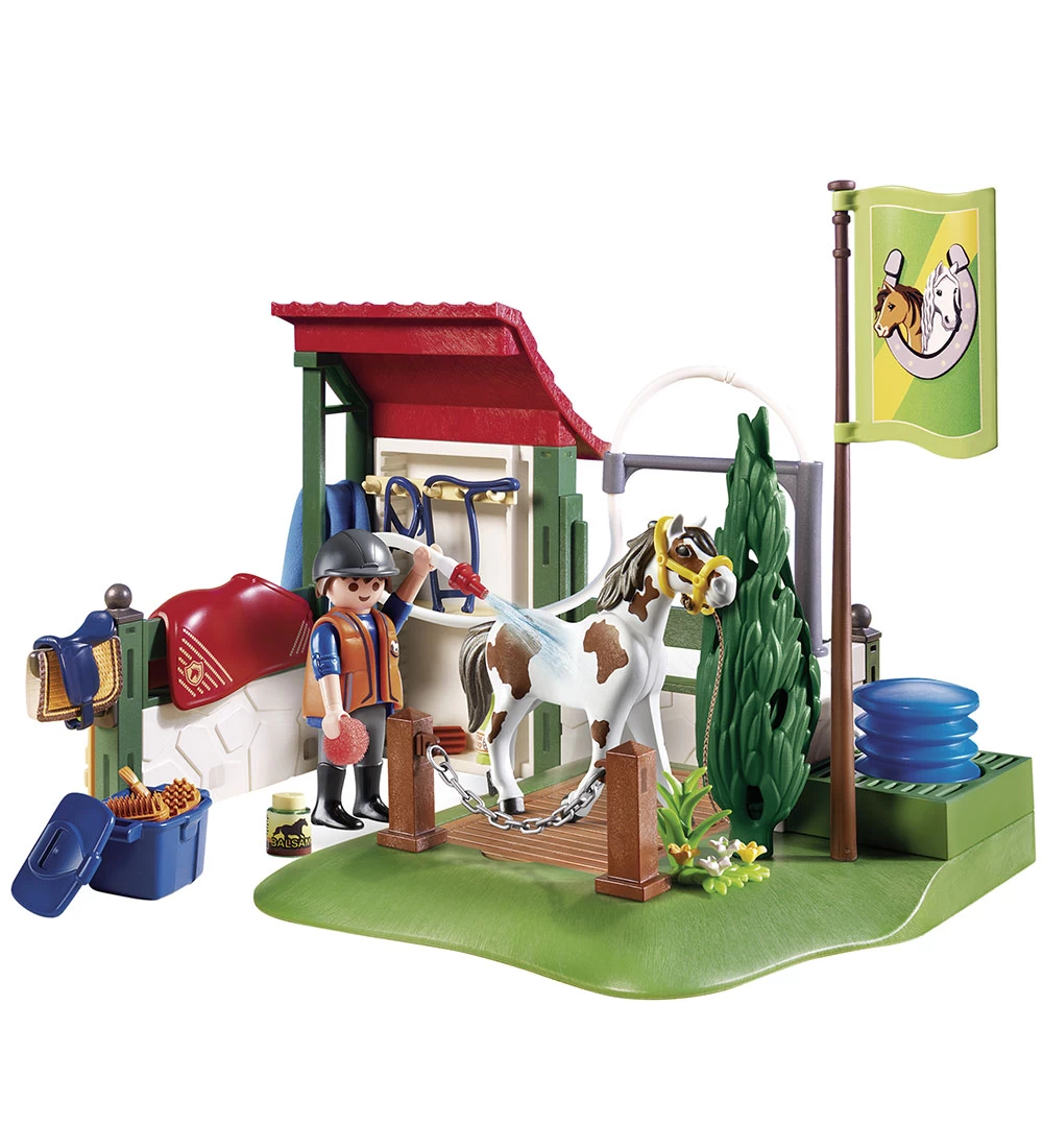 Hyggeligt Playmobil Country sæt med i alt 83 dele, der samles til en hestevaskeplads.
