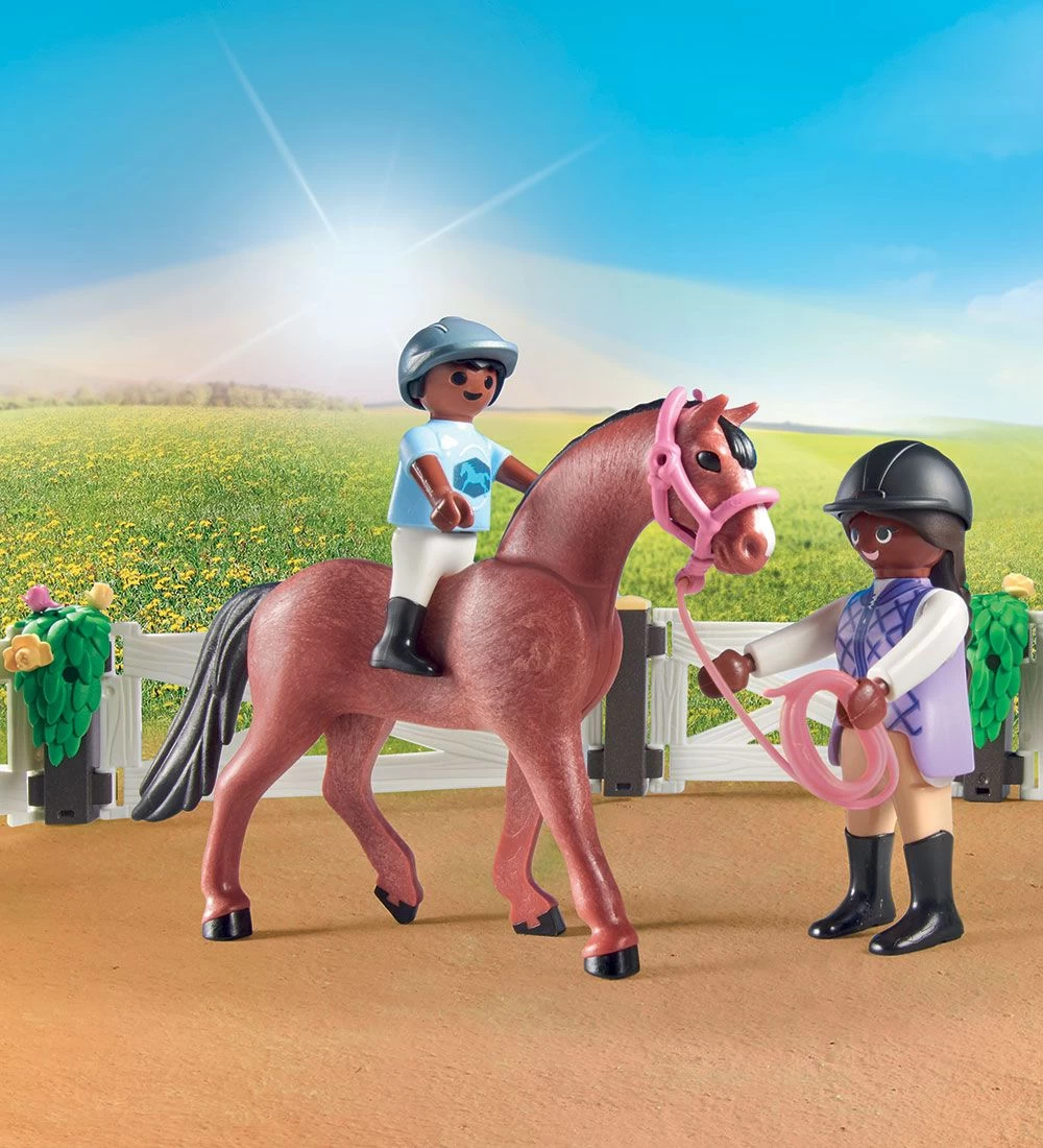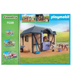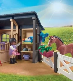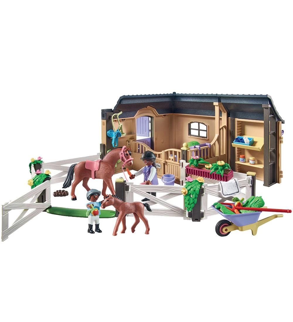 Hyggeligt Playmobil Country sæt med i alt 136 dele, der tilsammen udgør en ridestald med heste, rytter-figurer og en helt masse tilbehør.