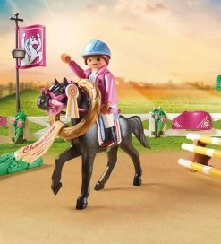 Byens bedste ryttere og heste dyster ved rideturneringen og kan vise deres færdigheder i forskellige discipliner. Sættet inkluderer både tre figurer, to heste, udfordringer til ridebanen og en masse tilbehør.