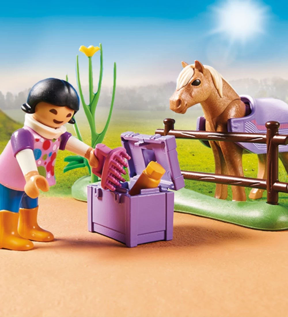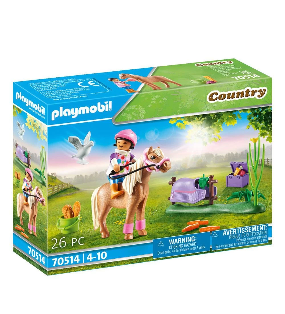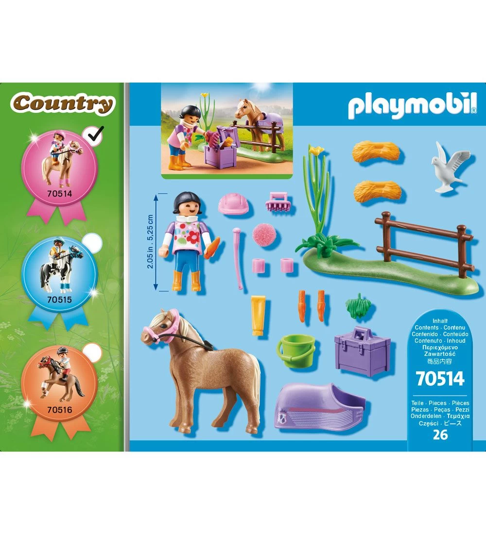 Hyggeligt Playmobil Country sæt med i alt 26 dele, der tilsammen udgør samleobjektet islænder med rytter og tilbehør.