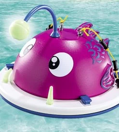 Hvor er det bedre at plaske, lege og klatre end på den sjove svømme-ø? Det er ikke så let at komme op på det lyserøde fiskehoved, men med lidt øvelse går det meget godt. Først går det mod toppen på fiske-klatreøen og derefter tilbage i vandet med et spring. Selv når det bliver mørkt, kan børnene ikke få nok af at klatre og lege. Hvor godt, at fisketænderne og lanternen lyser i mørket. Klatre-svømmeøen flyder i vand.