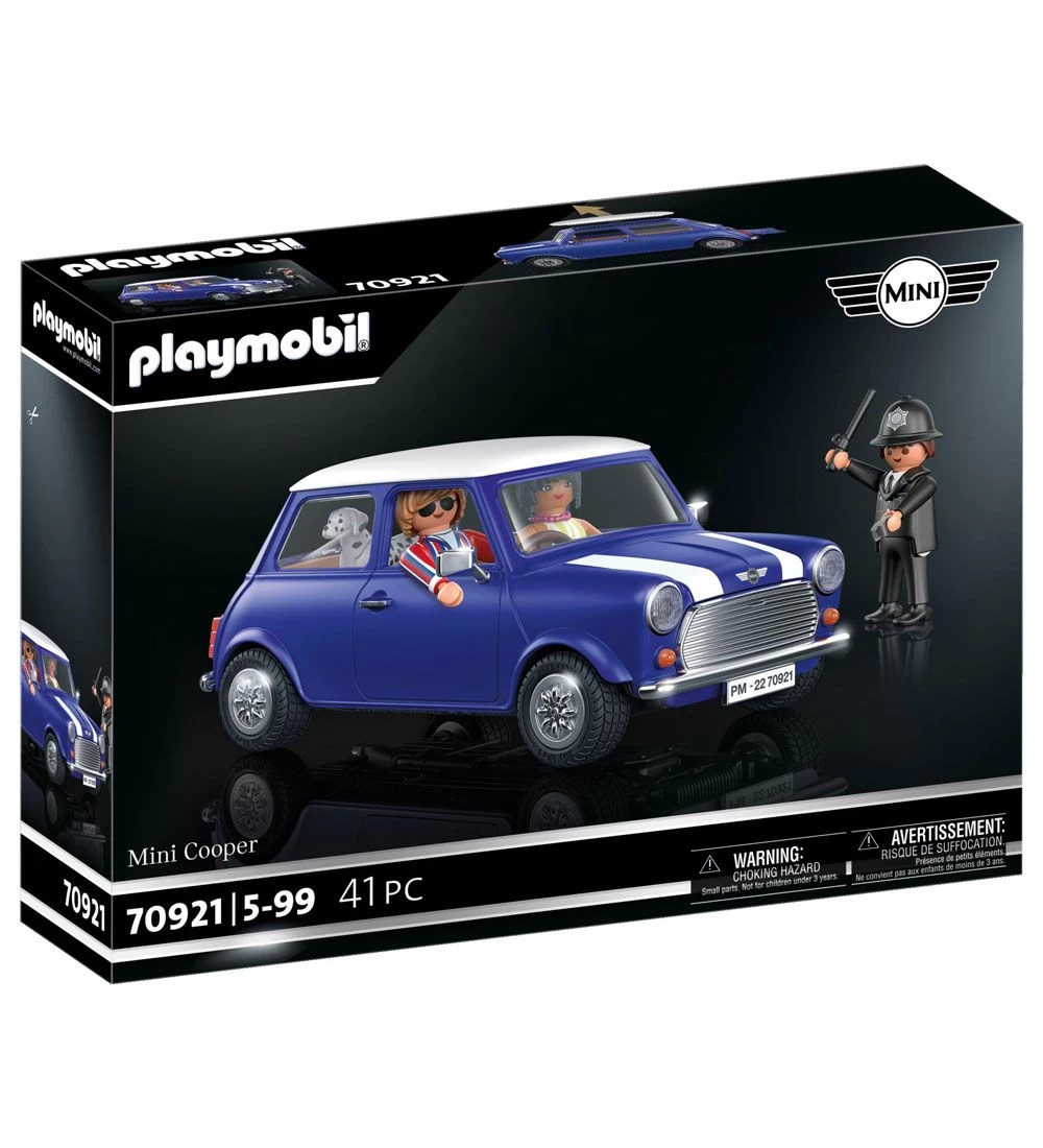 Sjovt Playmobil sæt med i alt 41 dele, der samles til en Mini Cooper i blå.