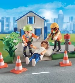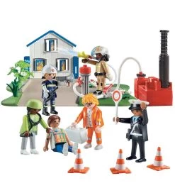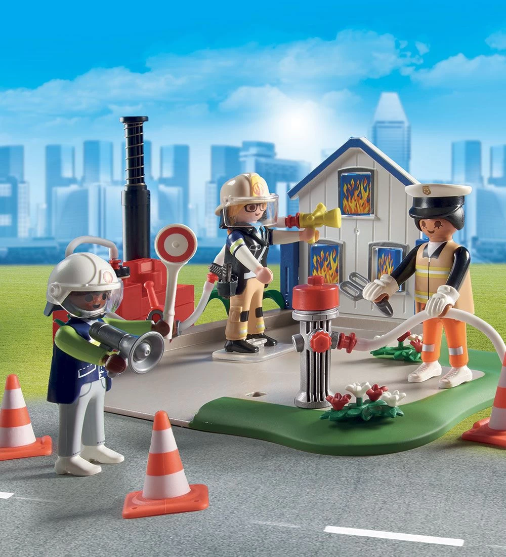 Sjovt Playmobil My Figures sæt med i alt 120 dele, der samles til en redningsmission med et hus i flammer.