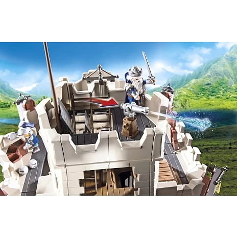 Den nye ridderverden fra PLAYMOBIL® overrasker med kreative våben, raffinerede forsvarssystemer og originale figurer. PLAYMOBIL®-klassikeren i et genialt nyt design sørger for sjov leg i mange timer. Legesættet indeholder Novelmore-figurerne Kong John og hans søn Prins Arwynn samt opfinderen Dario da Vanci og Lord Francis Forthwind.