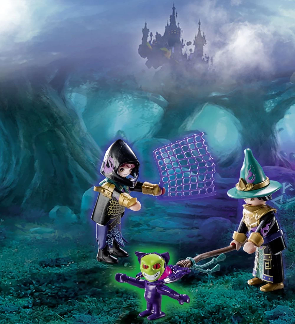 Sjovt Playmobil Novelmore sæt med i alt 46 dele, der samles til en vogn med troldmænd som jagter dæmoner.