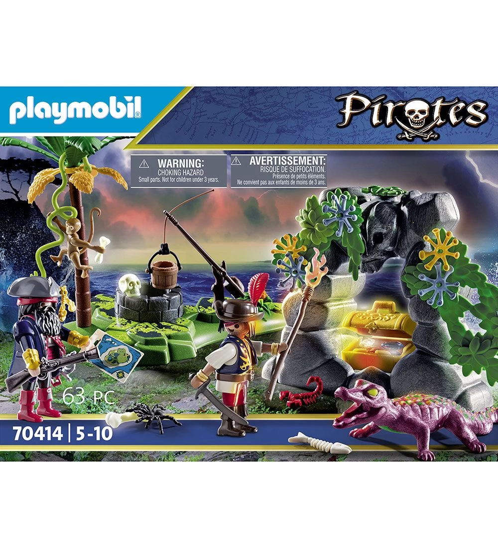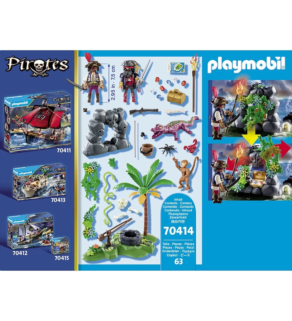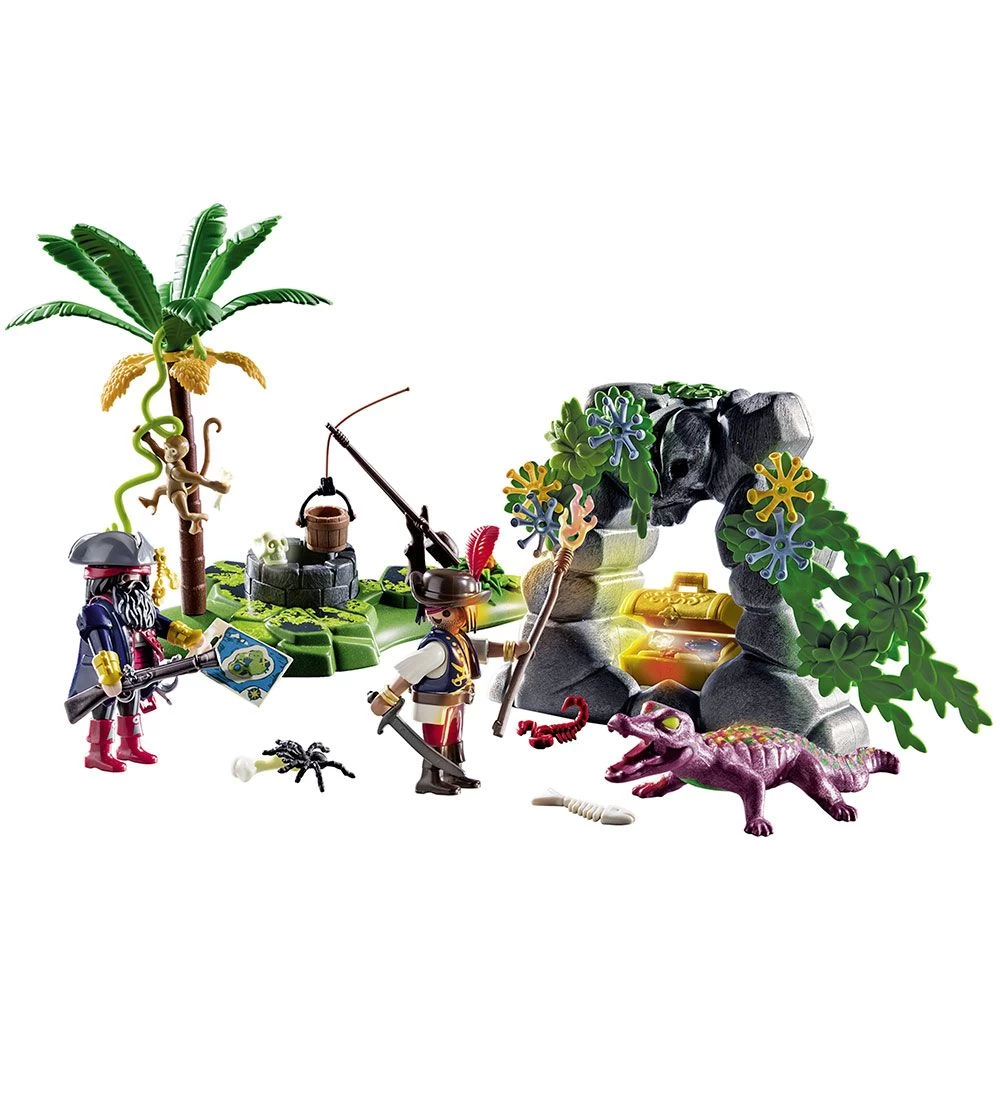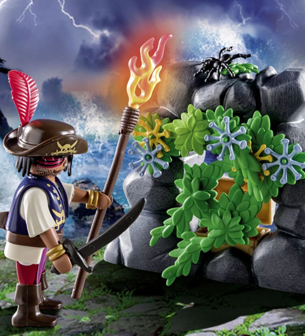 Sejt Playmobil Pirates sæt med i alt 63 dele, der samles til skjulestedet for en piratskat.