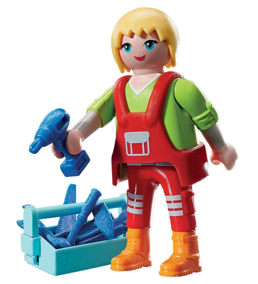 Sej Playmobil Playmo-Friends figur med i alt 9 dele, der tilsammen udgør en håndværker med tilbehør.