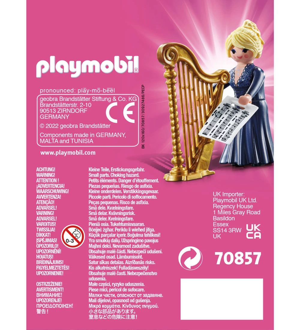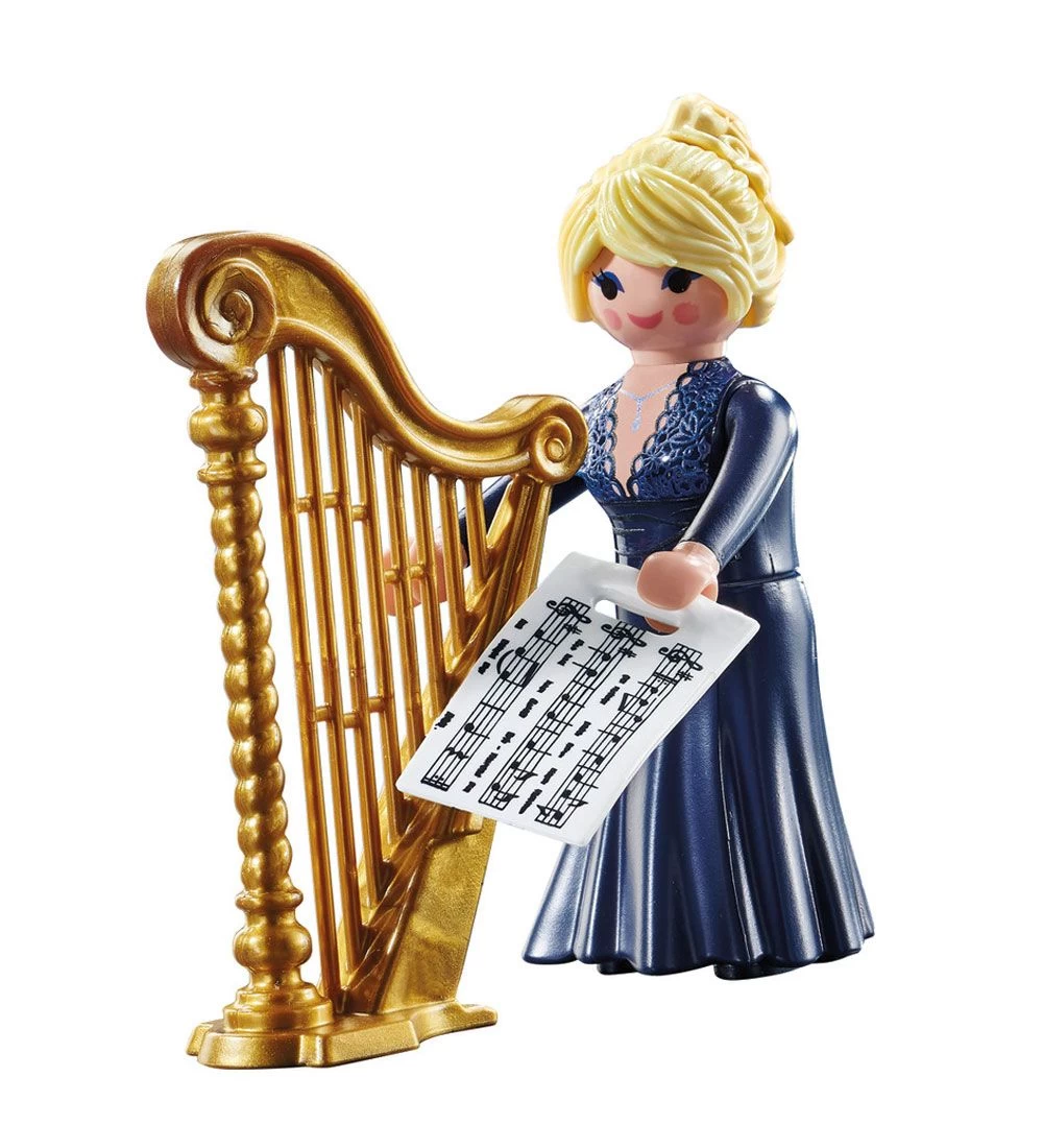 Fin Playmobil Playmo-Friends figur med i alt 4 dele, der tilsammen udgør en harpespiller med tilbehør.