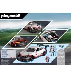 Sjovt Playmobil sæt med i alt 35 dele, der samles en Porsche 911 GT3 Cup i hvid.