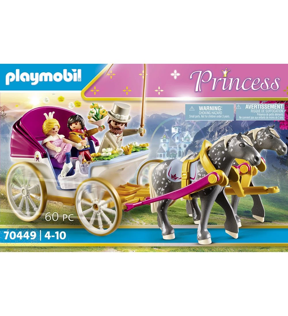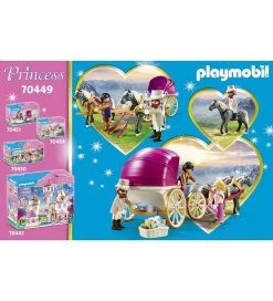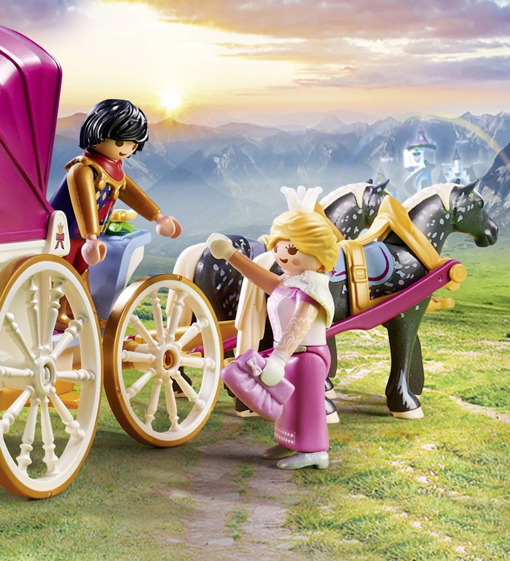 Eventyrligt Playmobil Princess sæt med i alt 60 dele, der samles til en romantisk hestevogn.