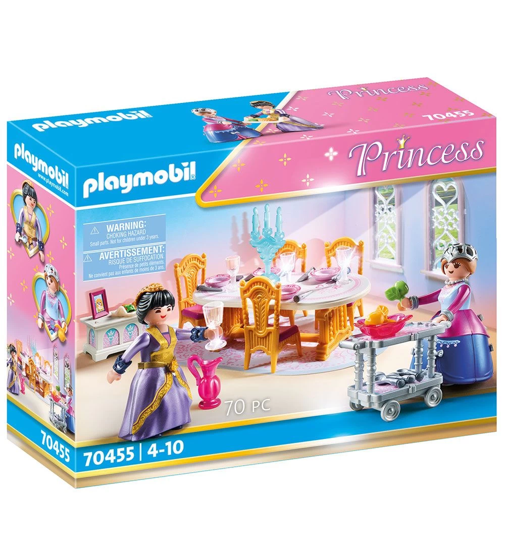 Eventyrligt Playmobil Princess sæt med i alt 70 dele, der samles til en spisesal.