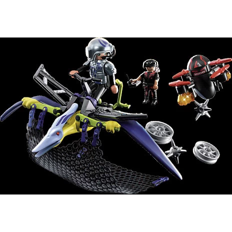 De ondsindede robotmaskiner bevæger sig også rundt i højderne. En drone gør luftrummet usikkert. Men det er ikke et problem for Kaidan og hans smidige pteranodon. På himlen har flyveøglen hjemme. Med sit sikkerhedsnet, kan han lynhurtigt uskadeliggøre modstanderen. Hans gode ven Kaidan ledsager ham selvfølgelig altid på ryggen. Denne kloge menneske/flyveøgle-duo kan ikke stoppes. Angreb fra luften – afværget!