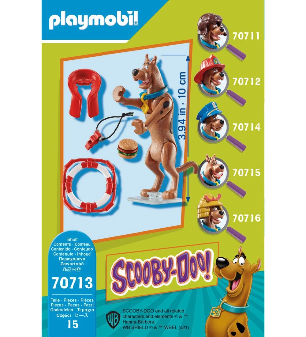 Lille Playmobil SCOOBY-DOO! sæt med i alt 15 dele, der tilsammen udgør en figur af Scooby-Do som livredder med tilbehør, som er et samlerobjekt.