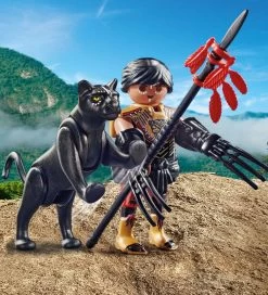 Lille Playmobil SpecialPlus sæt med i alt 9 dele, der tilsammen udgør en kriger og en panter med tilbehør.