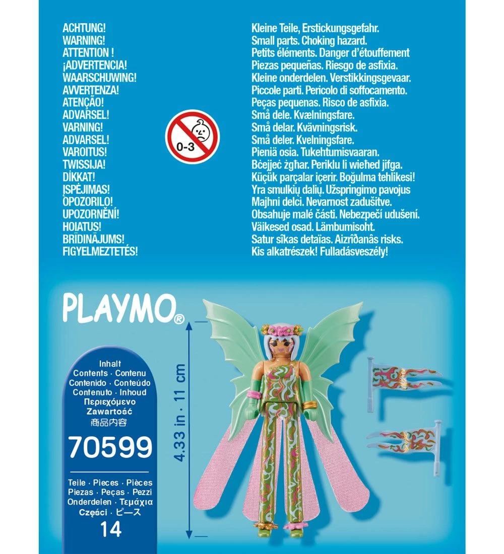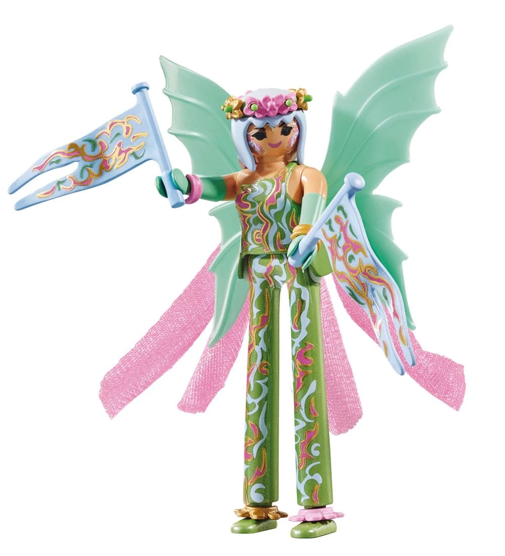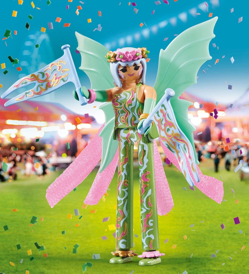 Lille Playmobil SpecialPlus sæt med i alt 14 dele, der tilsammen udgør en pige på stylter og udklædt som en fe samt med tilbehør.