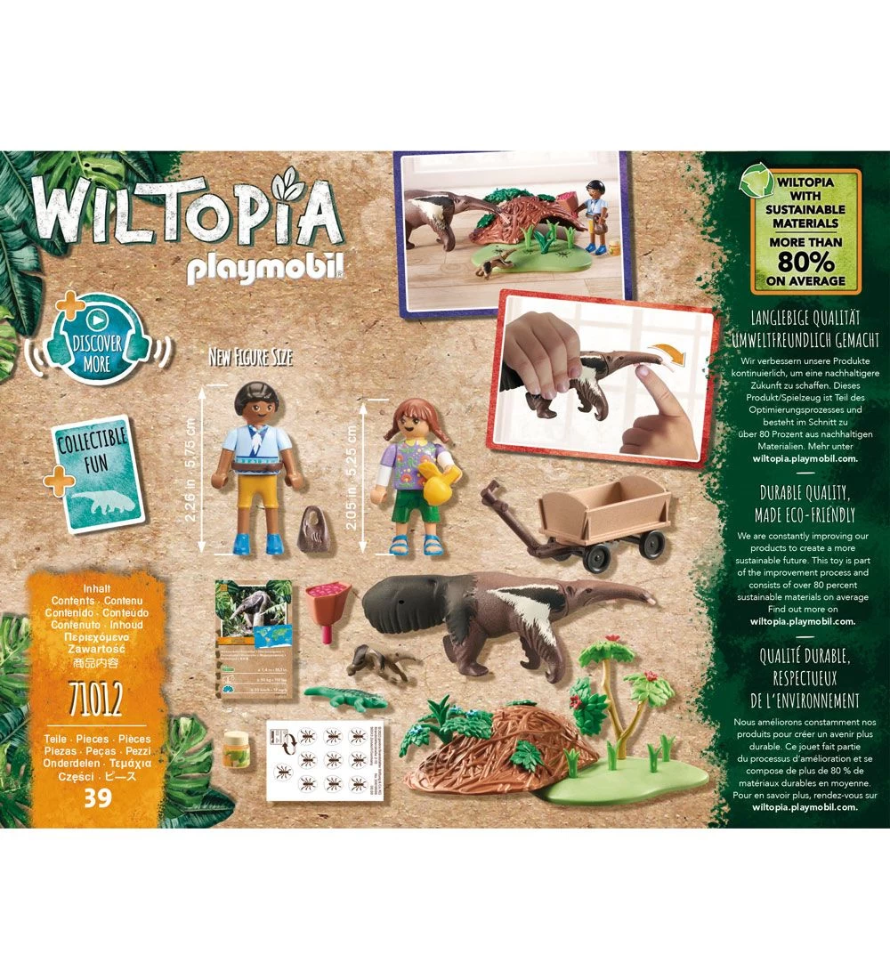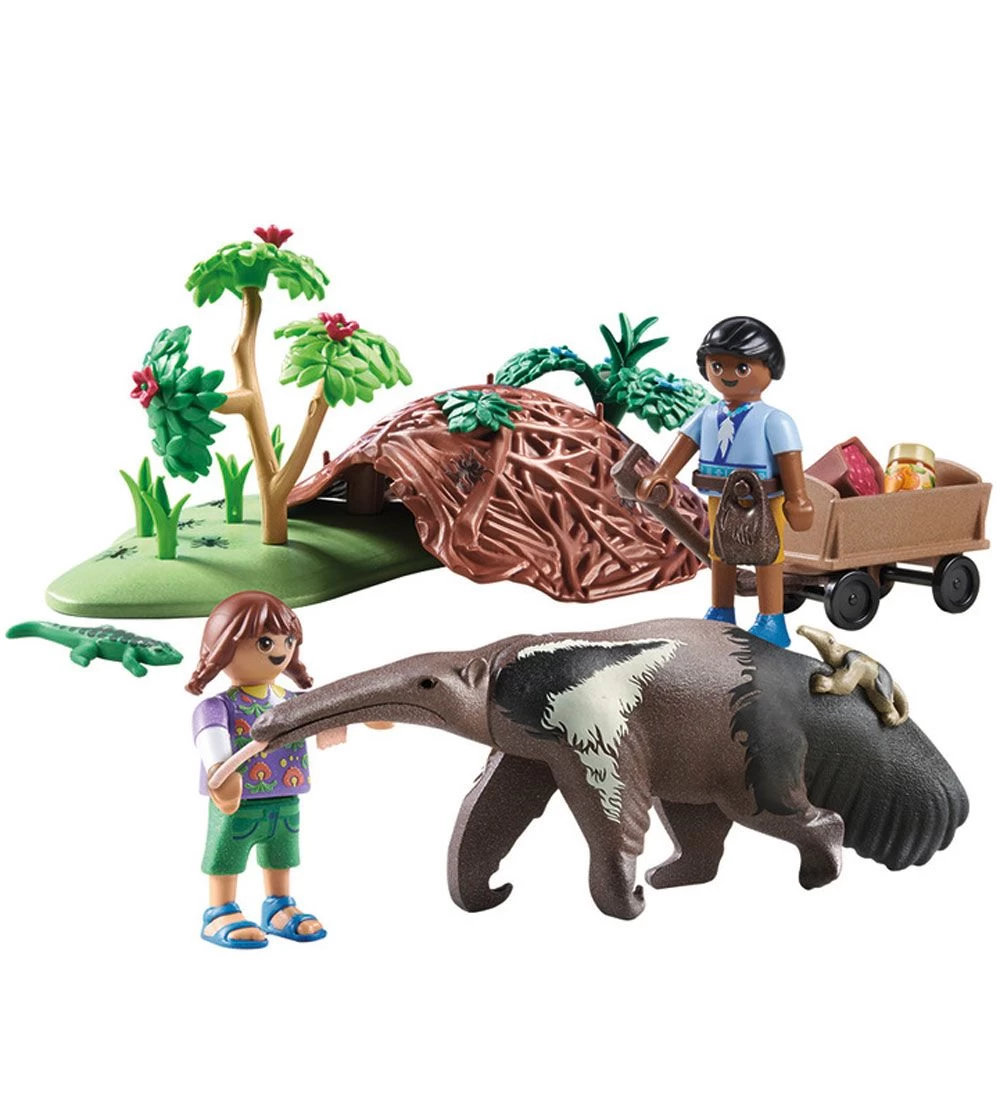 Lærerigt Playmobil Wiltopia sæt med en lille model af en myresluger og to figurer, der passer den, samt med tilbehør – i alt 39 dele.