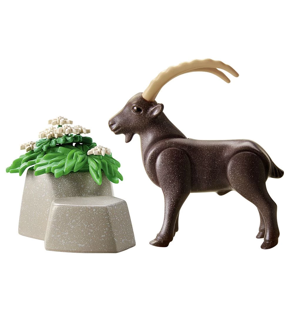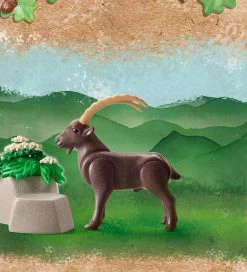 Lærerigt Playmobil Wiltopia sæt med en lille model af en stenbuk med tilbehør – i alt 12 dele.