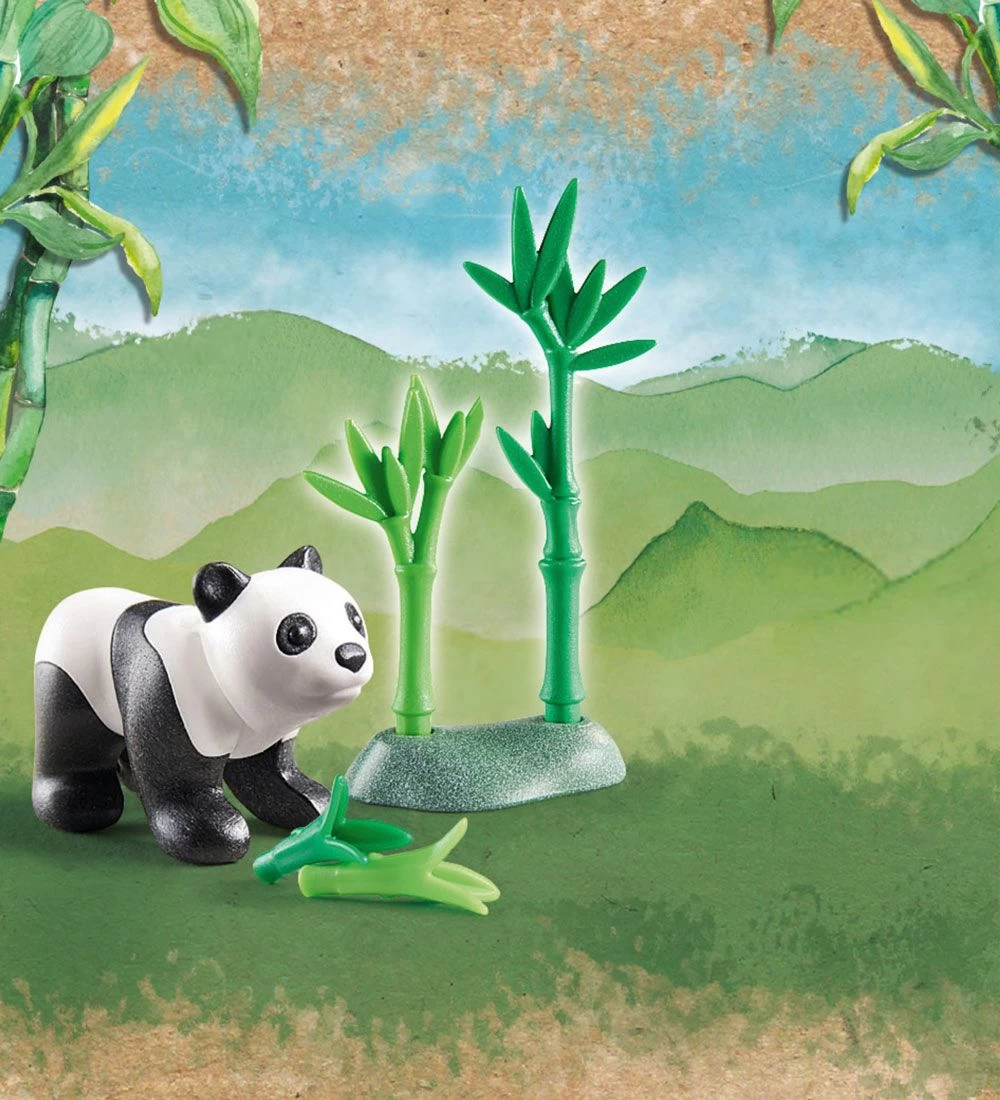 Lærerigt Playmobil Wiltopia sæt med en lille model af en pandaunge med tilbehør – i alt 7 dele.